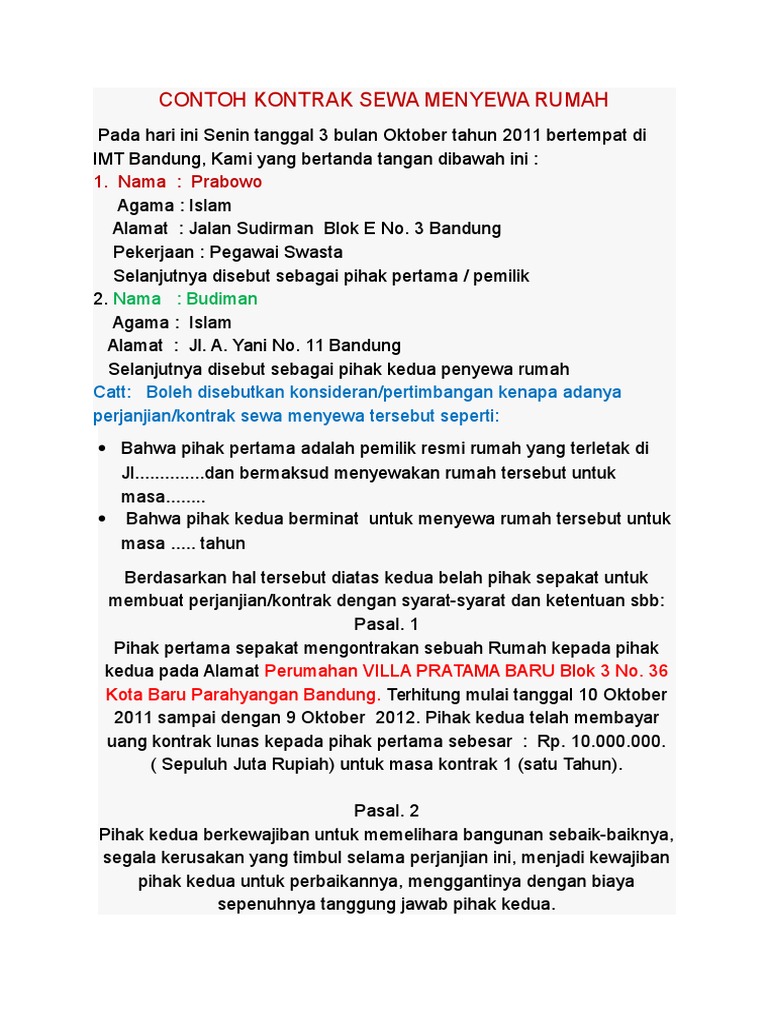 Notis Tamat Kontrak Sewa Rumah from imgv2-2-f.scribdassets.com Ingin menyewa rumah di indonesia. Memang dalam perkembangannya sebuah istilah bisa berubah dan berkembang mengekor perkembangan zaman itu. Setiap tuan rumah mempunyai kontrak atau ikatan perjanjian yang berbeza tetapi format surat dan isi kandungannya adalah sama. Menyewa rumah untuk tempat tinggal adalah solusi bagi pasangan baru yang ingin menghemat biaya. Mau buat surat, buka dulu contohsuratindonesia.com 🙂 Apa yang perlu ada dalam contoh perjanjian sewa rumah yang lengkap. Download contoh surat perjanjian kontrak rumah atau sewa rumah *password: Sewa rumah jakarta utara tahunan dan disewakan kontrakan bulanan / harian / mingguan, bisa parkir mobil, full furnished, dalam cluster / komplek, minimalis modern