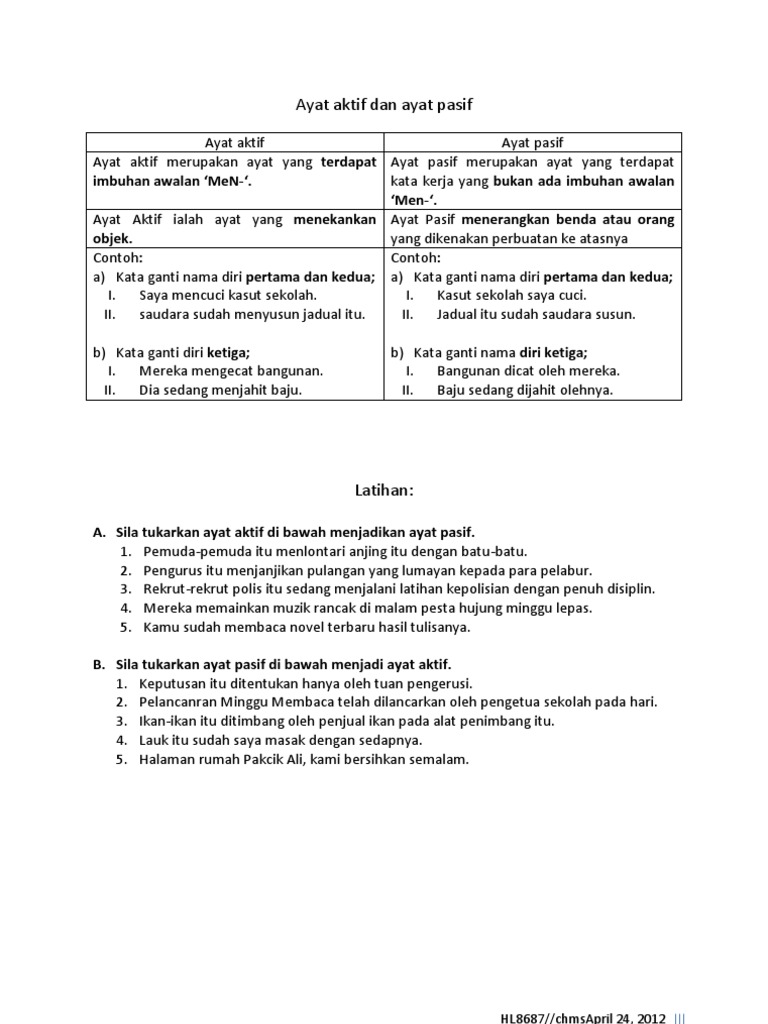 (betul) (pasif) karangan perlu engkau tulis pada waktu lapang. Ayah membelah kayu api itu. Modul soalan 3 (sintaksis) set 1: Latihan ayat aktif dan ayat pasif. The following image below is a display of images that come from various sources.