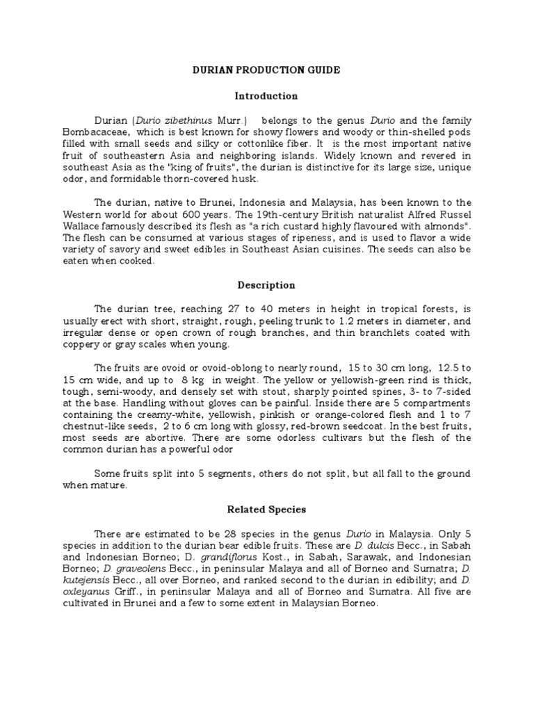 Durian Planting Guide Pdf - Durian Wikiwand / The seed is protected by an outer covering called a seed.. Durian isu (durio oxleyanus), a rare durian from lowland rainforest in borneo, peninsula malaysia and sumatera. If you experience variations to what is recommended, make a note for following years, download the printable version of the guides and add your note in the space provided. Young durian trees can easily wither with too much sunlight. Durians are planted along the mountain slopes, valley and in the watershed areas.tree space is not fixed with no planting rows.the planting method begins by clearing the land patches and native durian seeds buried in the ground. Downloading customer documentation pdf files from sds.
